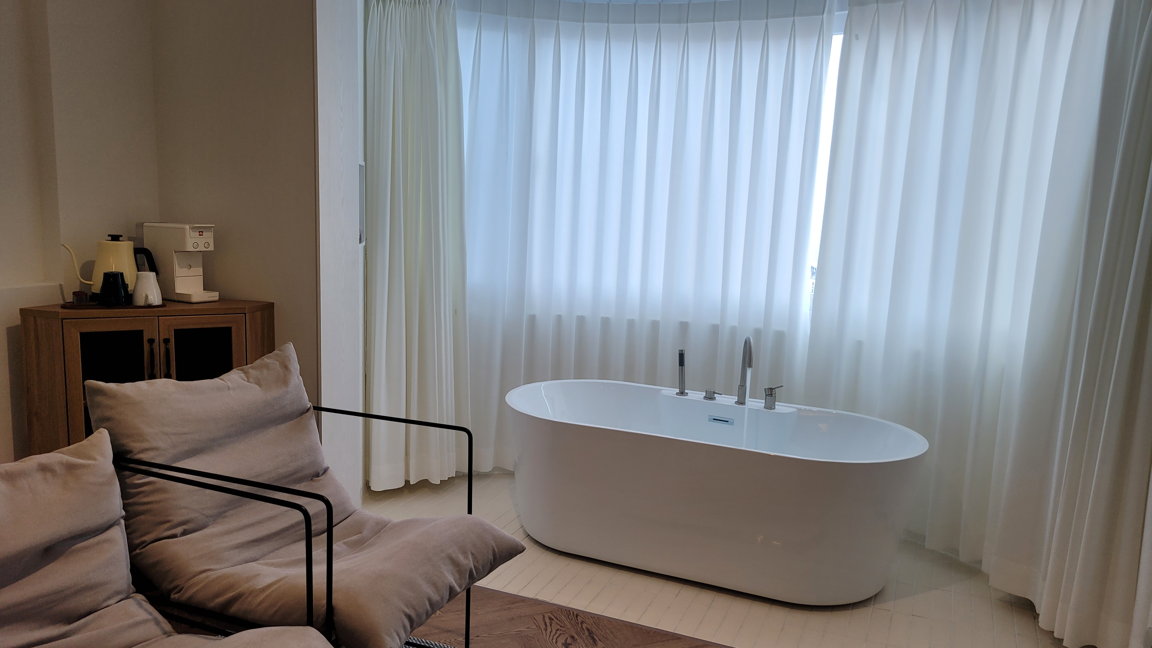멋진 바다 뷰를 바라보면서 반신욕을 할 수 있었다.